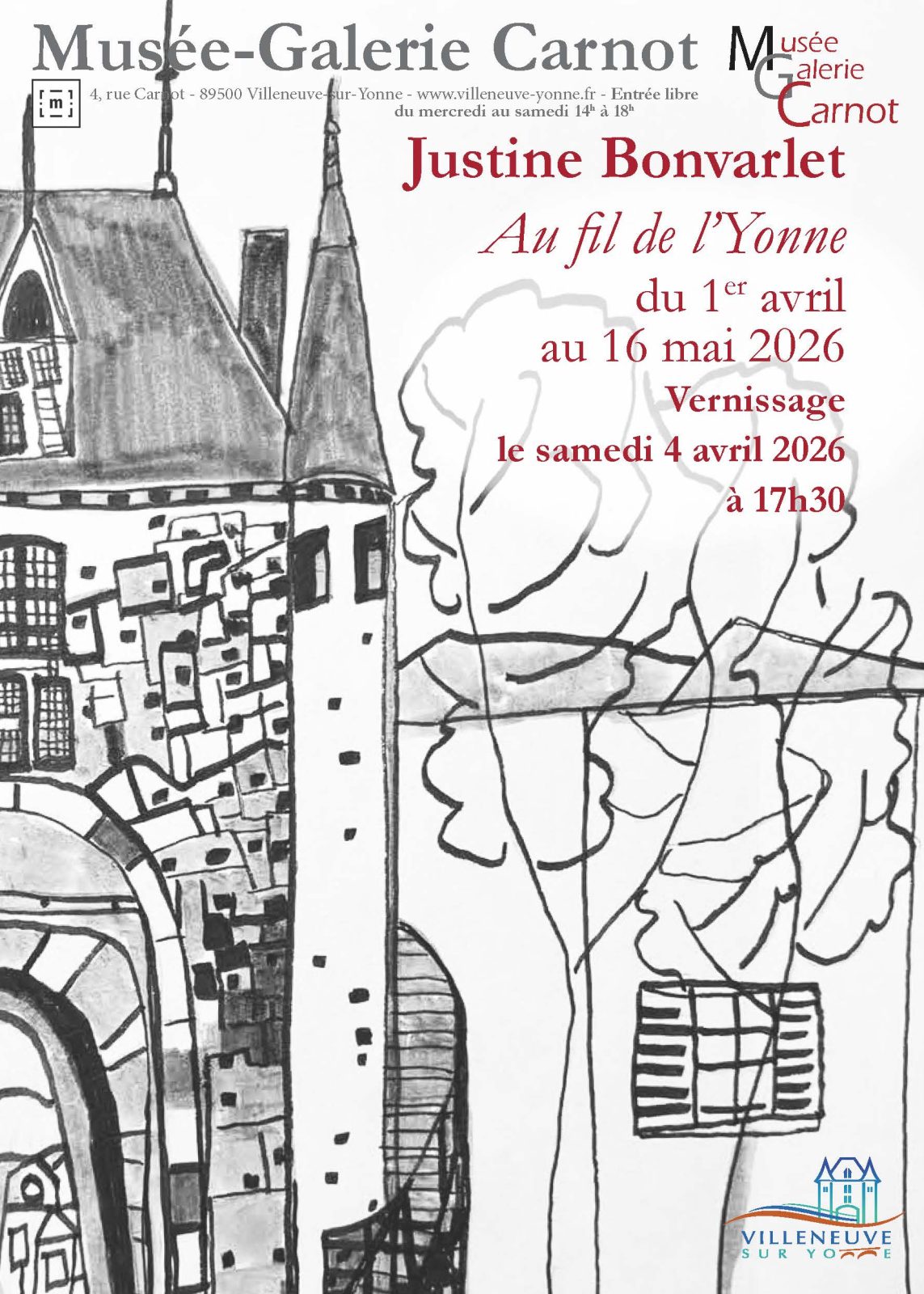 Opening of the exhibition “Au fil de l’Yonne” by Justine Bonvarlet Musée-Galerie Carnot 4 Rue Carnot 89500 VILLENEUVE-SUR-YONNE See my itinerary
