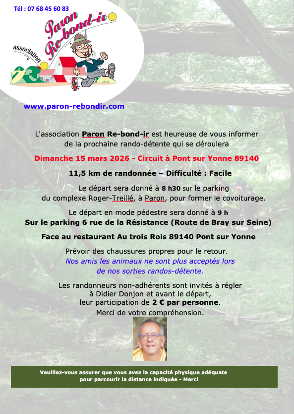 Rando-déténte Face au restaurant Aux 3 rrois 6 Rue de la Résistance 89140 PONT-SUR-YONNE See my itinerary